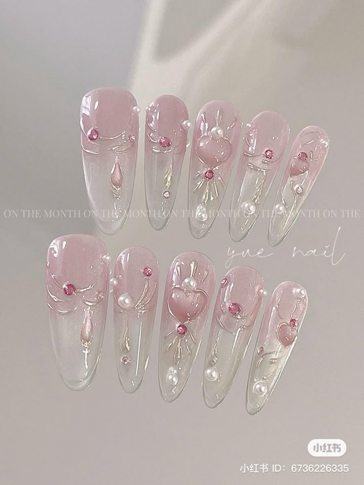 Tông hồng pastel trong suốt kết hợp charm tim, đá nhỏ và gel nổi tạo điểm nhấn ngọt ngào. Bộ nail mang vẻ đáng yêu nhưng không quá “bánh bèo”, vừa đủ sang và tinh tế. Phù hợp cho những cô nàng yêu phong cách tiểu thư hiện đại, nhẹ nhàng và nữ tính.